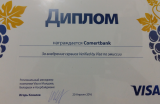 Ținem să vă informăm că în cadrul forumului VISA - ’Viitorul plăților electronice’ organizat la data 20.04.2016, COMERTBANK a fost decernată cu diploma pentru implementarea serviciului Verified by VISA – 3D Secure în calitate de emitent.